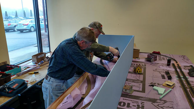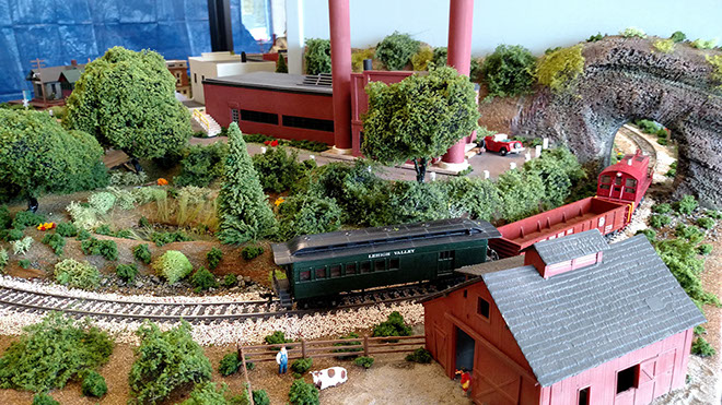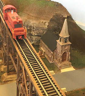 Mike Brinola has built a truly modular frame so that the layout can be easily disassembled and reassembled. This will enable the club to move the layout around throughout the entire Bicentennial Year.